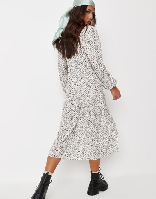 Ditsy Floral Print Long Sleeve Midi Dress Nasty Gal