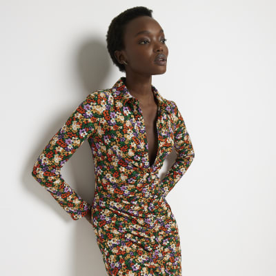 Womens Summer Casual Ruffle Short Sleeve Deep V. Sister Jane long sleeve maxi shirt dress in autumn floral. Rachel Stevens Floral Twist Satin Midi Dress.
